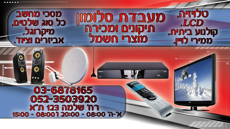 Да любой телевизор можем сделать умным. Замена светодиодной подсветки телевизоров Ремонт продажа пультов телевизоров, кондиционеров! Ремонт микровалновые печи Ремонт профессиональных усилителей Ремонт музыкального оборудования Ремонт аппаратов для маникюра, педикюра Тель-Авив, רחי דרך שלמה 123 0523503920 |